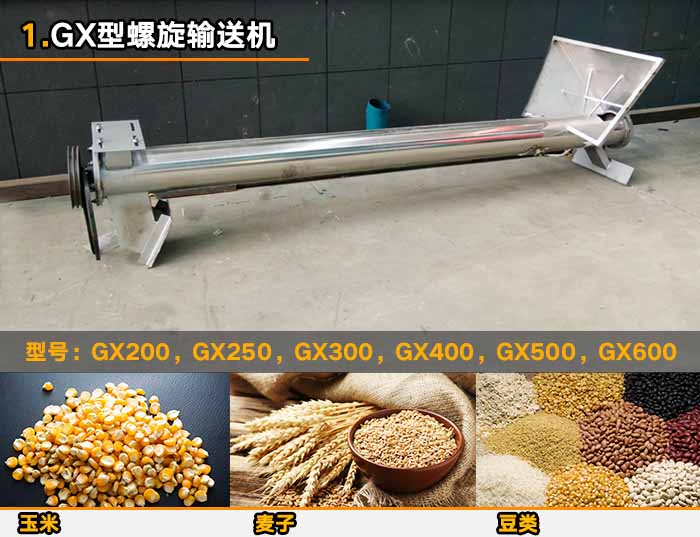 GX型螺旋輸送機是較老的螺旋輸送設備,其有單管于雙管兩種形式,適用于水平的輸送傾斜角不能夠超過20°??奢斔鸵恍K狀的(小塊狀物料)例如:麥子,玉米,黃豆等糧食。