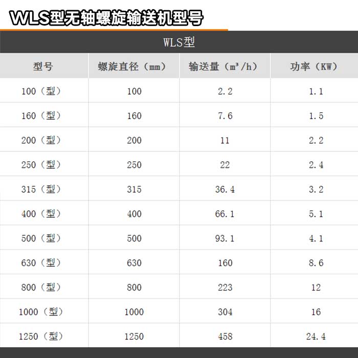 螺旋輸送機的出現逐漸的,代替了其它的輸送設備。同時由于螺旋輸送機使用于較多的行業所以其型號和規格有很多那么,螺旋輸送機其常見的規格和型號有哪些呢?今天小編就向大家簡單的介紹一下,螺旋輸送機有哪些常見的規格,型號如下所示。