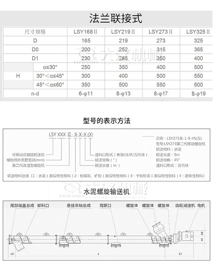 水泥螺旋輸送機由碳鋼制成,機殼表面有專門的粉末涂層,由一個至少裝有一個入口和出口噴嘴相撞的管狀槽組成,在每個管端都有一個焊接法蘭,在中心管上焊接了螺旋螺紋,每端都有聯軸器襯套,兩個端軸承組件都具有自動調節功能軸封(其中一個軸承組件已集成到驅動單元中),中間懸掛軸承的數量取決于總長度,主要主要用于混凝土配料廠,也用于其他建材加工廠,用于輸送或輸送水泥和類似于水泥的材料。參數如下: