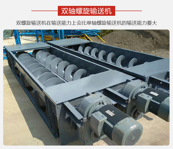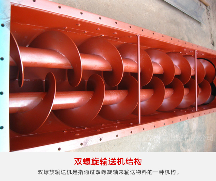 雙螺旋輸送機,其是輸送機中的一種,而且,從某一方面來講的話,其是指通過雙螺旋軸來輸送物料的一種機構(gòu)。因此,其的工作原理,可以認為是,擋板提升輸送機,通過旋轉(zhuǎn)的螺旋葉片,來完成物料輸送這項工作的。