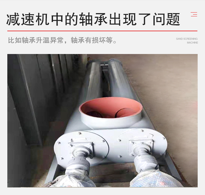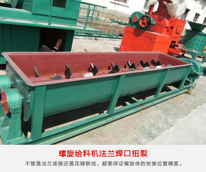 1、由于異常扭矩的產(chǎn)生,聯(lián)結(jié)法蘭焊接失效,處理方法是保證設(shè)備安裝精度,不管是法蘭連接還是花鍵聯(lián)結(jié),都要保證螺旋體的安裝位置精度,安裝后應接線調(diào)試確定螺旋轉(zhuǎn)向,聲音有無異常。試運轉(zhuǎn)后檢查電機、減速機、軸承溫升,一切正常后,開動手動螺旋料倉閘門逐漸加料,經(jīng)過調(diào)試后,使螺旋運轉(zhuǎn)平穩(wěn)。