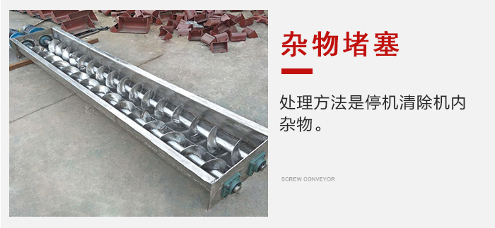 2、物料中雜物使螺旋吊軸承堵塞,處理方法是停機清除機內(nèi)雜物。