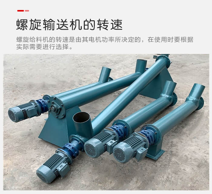 螺旋給料機的轉速是由其電機功率所決定的,在使用時要根據實際需要進行選擇。一般情況下,螺旋給料機轉速越高,其輸送量就越大,但是其轉速不是越大越好,因為如果螺旋給料機轉速超過規定的閾值,物料會因為離心力過大而向外拋,會導致無法輸送影響螺旋給料機正常工作。