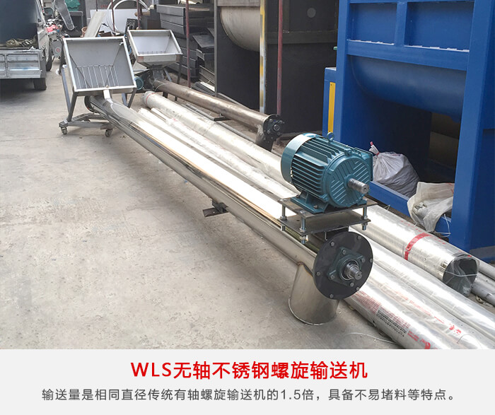 采用無軸設計,主要用來輸送易于纏繞、粘度高的物料,輸送長度可以達到60m,輸送量是相同直徑傳統有軸螺旋輸送機的1.5倍,具備不易堵料、性好、輸送高效、能耗低的特點。