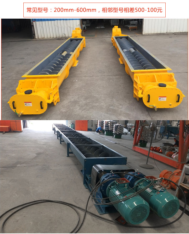 雙螺旋輸送機(jī)常見(jiàn)有200mm-600mm等6種型號(hào)規(guī)格;型號(hào)越大輸送量越高,可達(dá)458立方米/小時(shí),用戶可根據(jù)實(shí)際情況選擇適合的型號(hào),此外也可支持特殊型號(hào)定制。