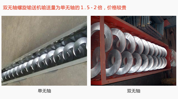 無軸螺旋輸送機型號有WLS150-WLS500等6中規(guī)格,型號越大產(chǎn)量越高,價格越貴;此外還分單無軸和雙無軸兩種:雙無軸螺旋輸送機輸送量為單無軸的1.5-2倍,可輸送物料同時具備冷卻、攪拌的功能,其價格比單軸貴。