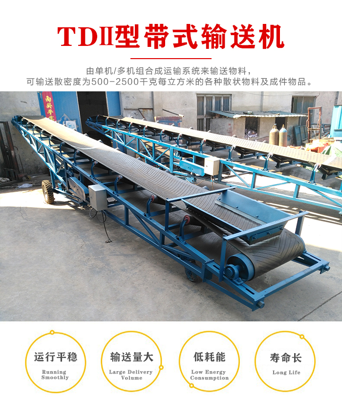 TDII型帶式輸送機式通過型系列產品,是將原來TD75型機、DX型兩大系列(即通用型和高強度型)統一,更新換代的新產品,可廣泛用于冶金、礦山、煤炭、港口、電站、建材、化工、輕工、石油等各個行業。由單機多機組合成運輸系統來輸送物料,可輸送散密度為500-2500KG/M3的各種散狀物料及成件物品。