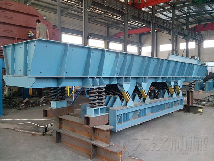 (1)振動(dòng)輸送機(jī)的底架與槽體必須安裝平直,建議其平直度在10米長(zhǎng)度不大于5-8毫米,底架與槽體過大的撓曲會(huì)引起較大的安裝應(yīng)力,進(jìn)而會(huì)引起這些機(jī)件的早期損壞。