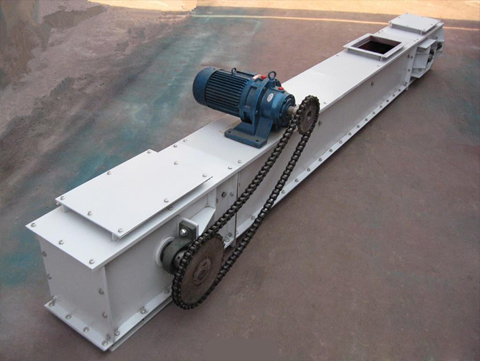 刮板鏈?zhǔn)捷斔蜋C(jī)用刮板鏈牽引,在槽內(nèi)運(yùn)送散料的輸送機(jī)叫刮板輸送機(jī)。KS刮板輸送機(jī)刮板輸送機(jī)的相鄰中部槽在水平、垂直面內(nèi)可有限度折曲的叫可彎曲刮板輸送機(jī)。