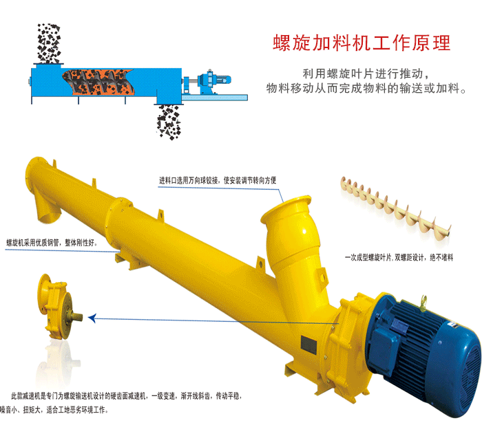 簡(jiǎn)介:螺旋加料機(jī)又稱螺旋喂料機(jī),主要利用螺旋的輸送功能完成,物料的添加和輸送。