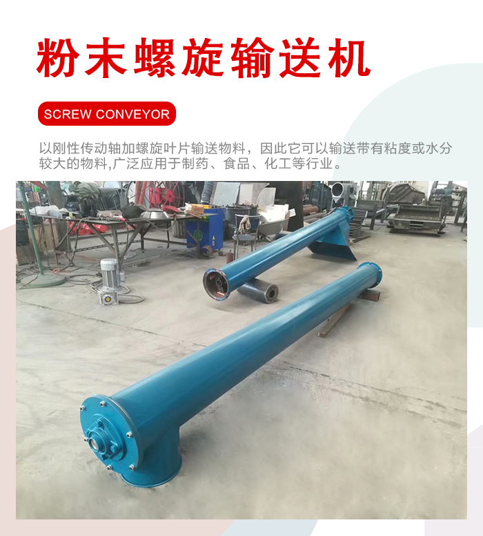 5)粉末螺旋輸送機由螺旋機本體、進出料口及驅動裝置三部分組成。