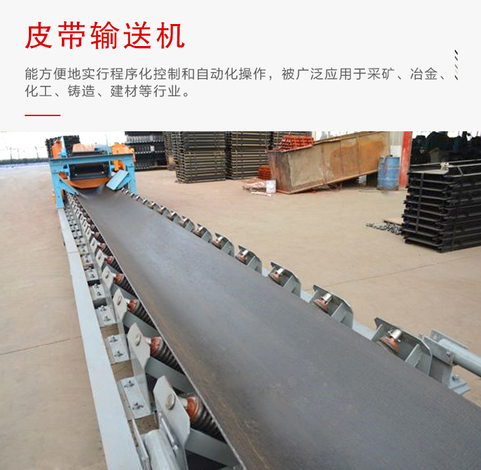 皮帶輸送機(jī)又叫膠帶輸送機(jī),能方便地實(shí)行程序化控制和自動(dòng)化操作,皮帶輸送機(jī)廣泛應(yīng)用于采礦、冶金、化工、鑄造、建材等行業(yè)的輸送和生產(chǎn)流水線以及水電站建設(shè)工地和港口等生產(chǎn)部門,主要用于連續(xù)或間歇運(yùn)動(dòng)來輸送100KG以下的物品或粉狀、顆狀物品,其運(yùn)行高速、平穩(wěn),噪音低,并可以上下坡傳送,具有輸送能力強(qiáng),輸送距離遠(yuǎn),結(jié)構(gòu)簡單易于維護(hù)的優(yōu)勢(shì)。