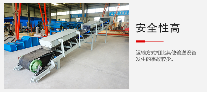皮帶輸送機(jī)具有很高的安全性, 需要的生產(chǎn)人員很少,其他運(yùn)輸方式相比發(fā)生事故的機(jī)會(huì)比較少。不會(huì)因大塊物料掉下來砸傷人員或由于大型笨重的車輛操縱失靈而引起事故。