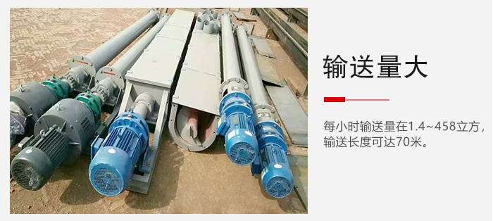 2、每小時輸送量在1.4~458立方,輸送長度可達70米,輸送量大;