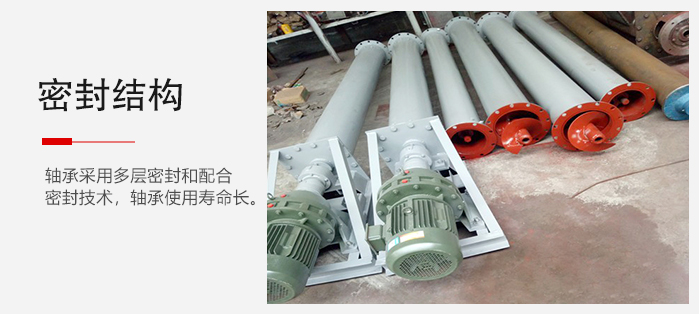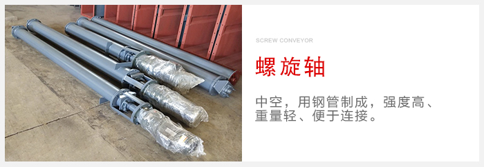 螺旋軸:中空,用鋼管制成,強度高、重量輕、便于連接。在軸與軸的連接處和安裝軸承處使用一小段實心軸。在連接處將實心軸伸入空心軸內用高強度的螺栓按相互垂直方向對穿空心軸與實心軸來固定連接螺旋軸。