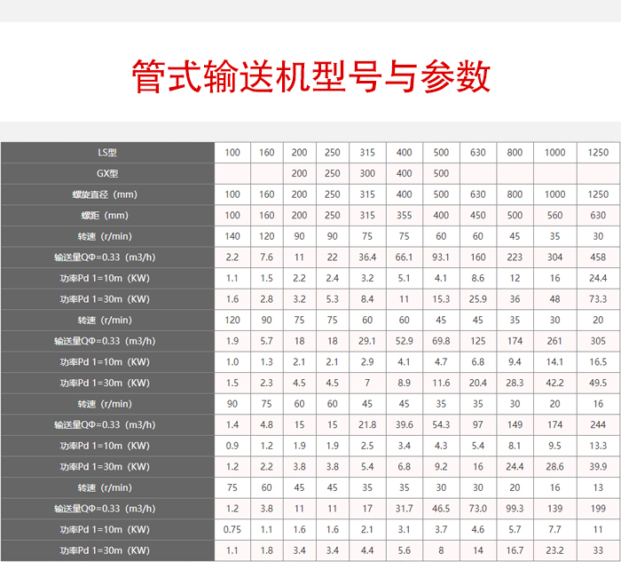 不同性質的物料對管式輸送機的葉片形狀有不同的要求。