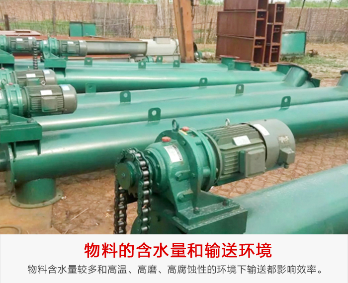 物料含水量較多,在輸送過程中物料容易黏附在螺旋葉片或輸送機內壁上,影響輸送效率。