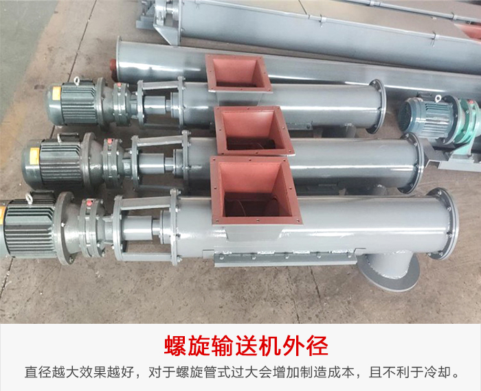 直徑越大效果越好,但是對于開式管式輸送機,螺旋外徑過大會增加制造成本,且不利于冷卻。此外,外徑值沒有必要一定取500的整數倍。
